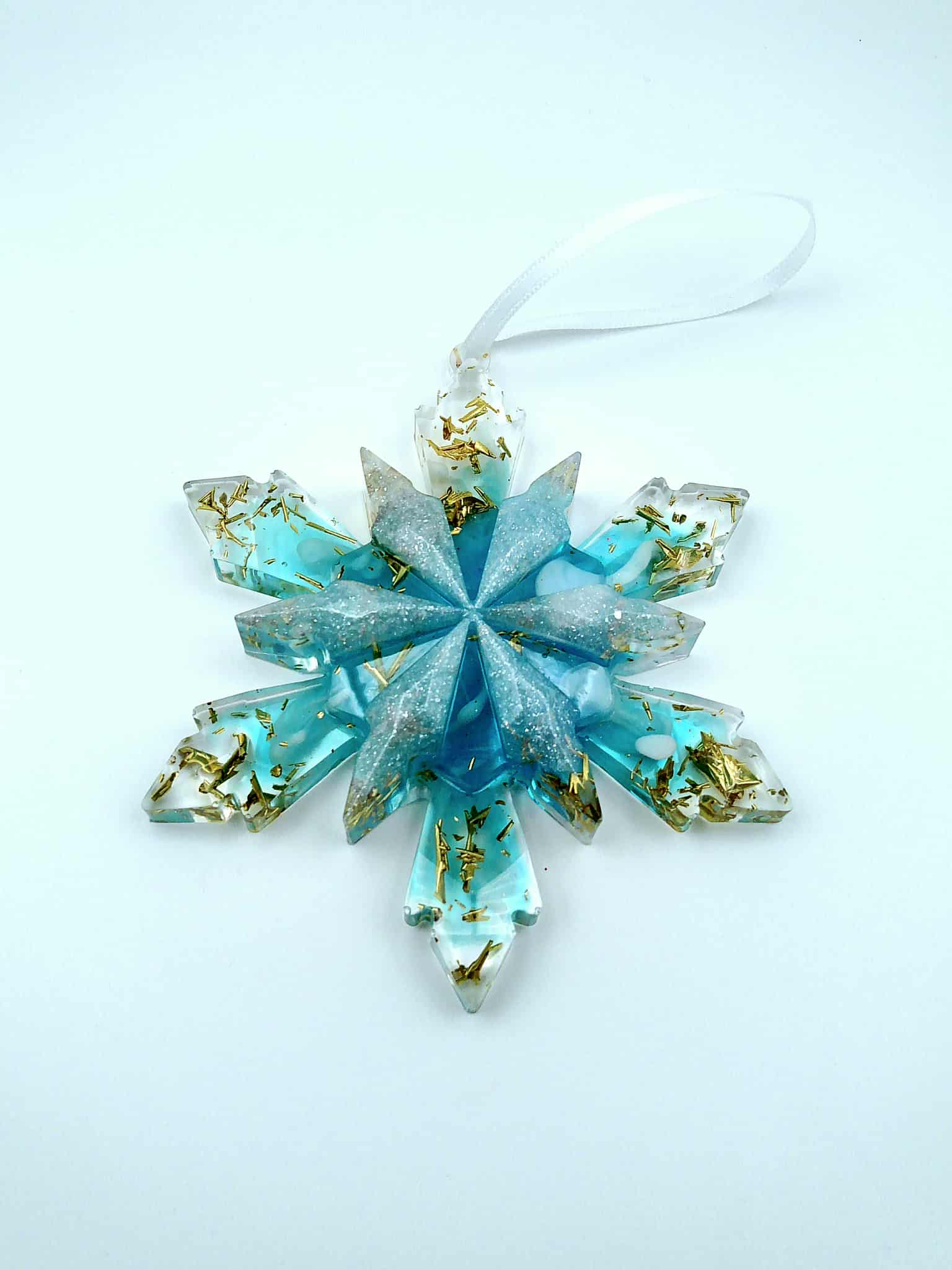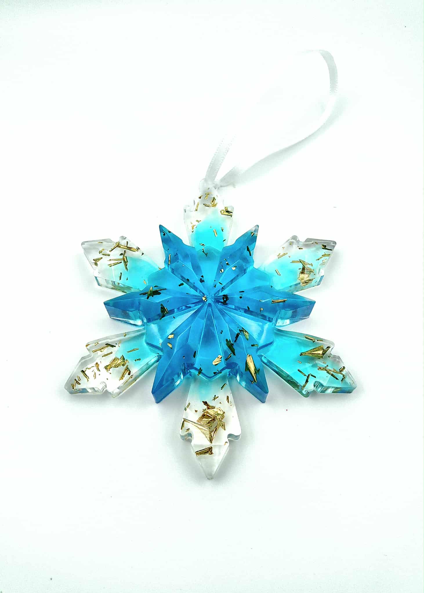 Magnifiques flocons 3D en résine époxy, réalisés dans de tons bleus vibrants et ornés de délicats flocons dorés. ✨ Chaque pièce capture la beauté glacée de l’hiver avec une finition artisanale unique.