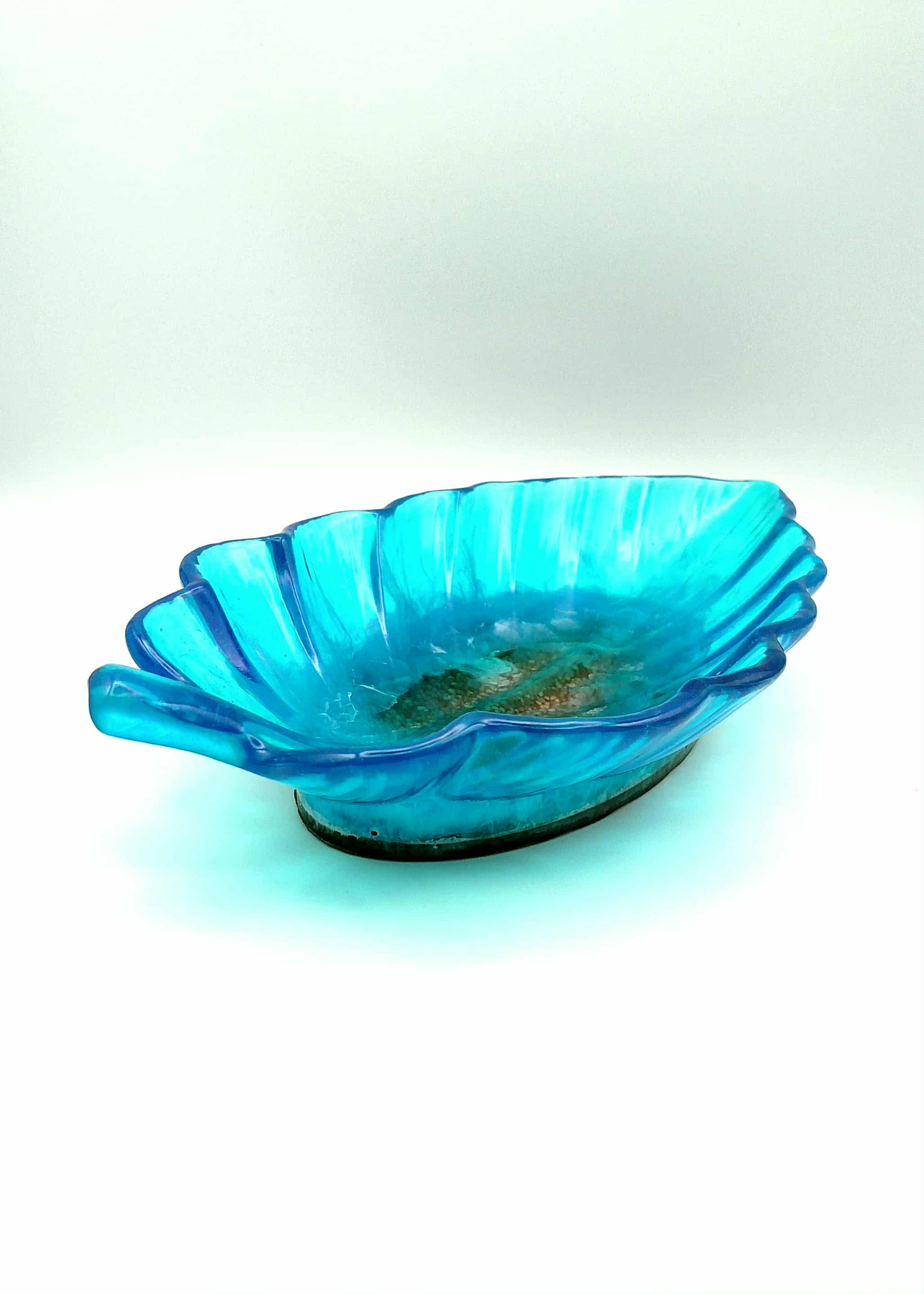 🍃 Plat en époxy en forme de feuille – Bleu océan 🩵